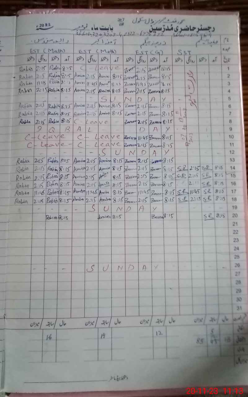| Name: SA**** BE**** Designation: (School Headmaster's/Headmistress's) SST (GENERAL) Phone/Cell Number: 03**** |