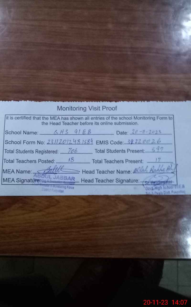 | EMIS Code: 39220026 | Name of School: GHS 91/EB | |||