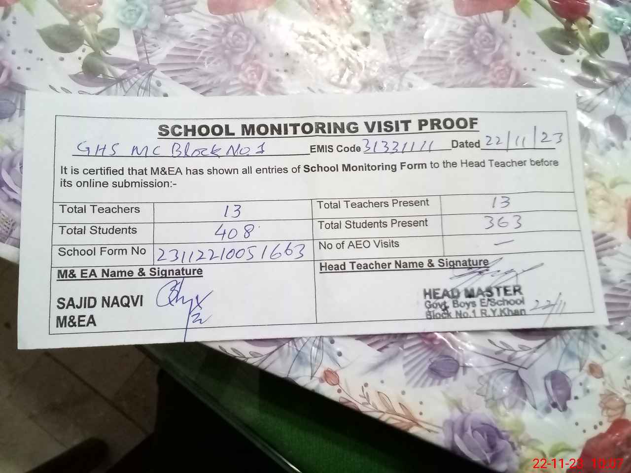 | EMIS Code: 31331111 | Name of School: GHS MC BLOCK NO. 1 | |||