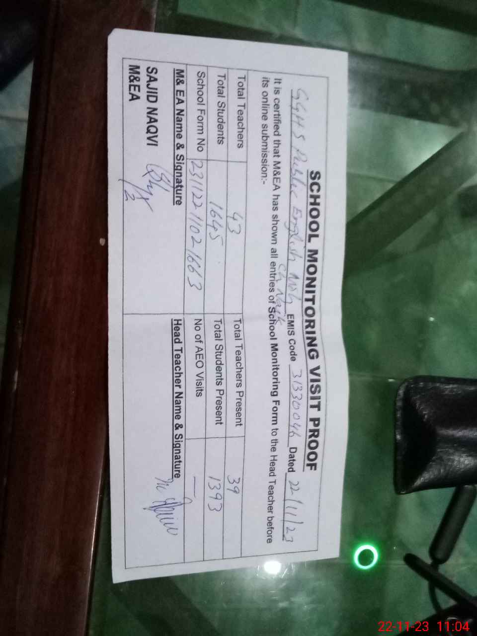 | EMIS Code: 31330046 | Name of School: GGHS PUBLIC ENGLISH MOHALLA CH. NAIKE | |||