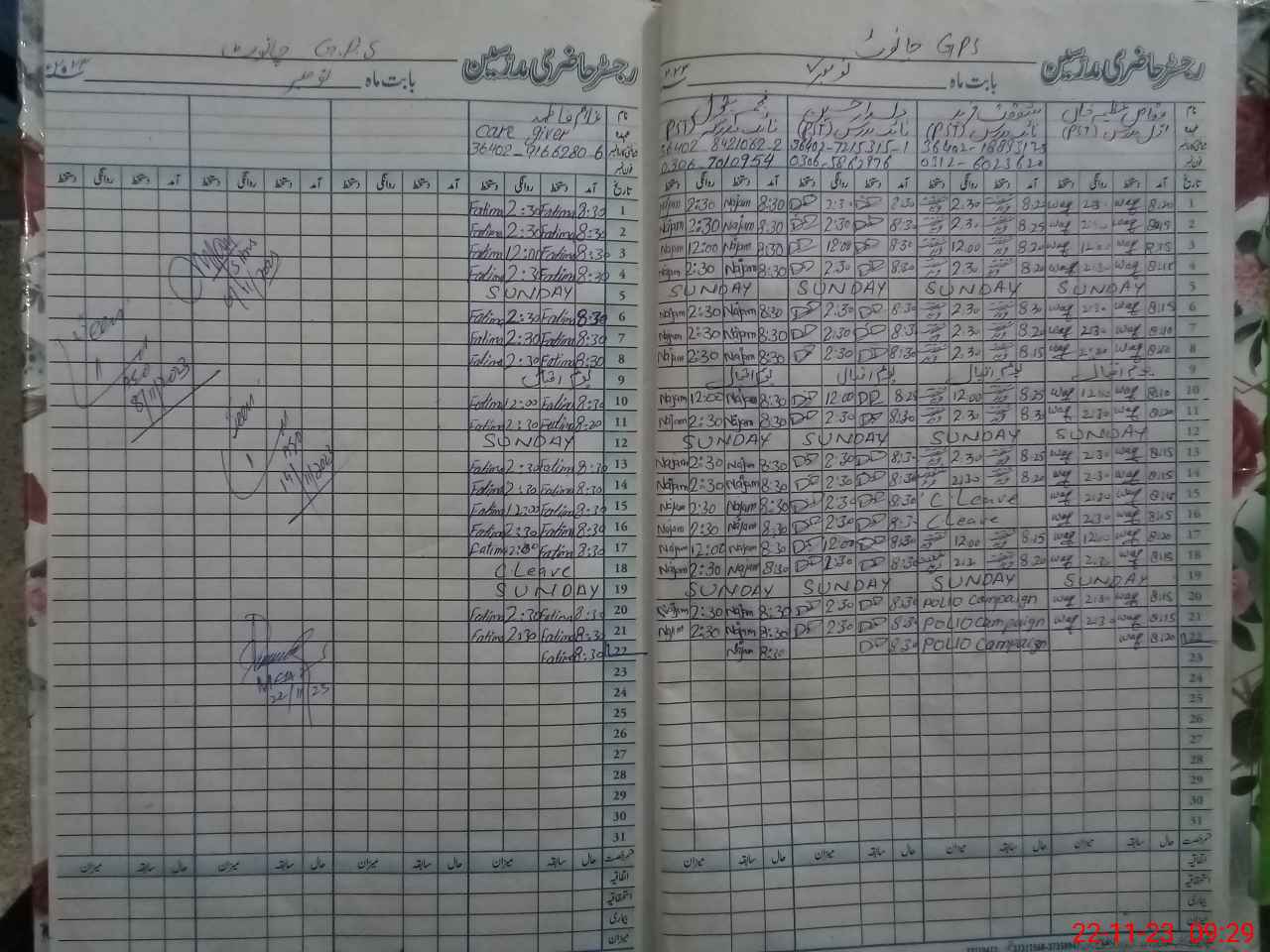 | CNIC | Full Name | Designation | R/C | Absence During Last Calender Month |