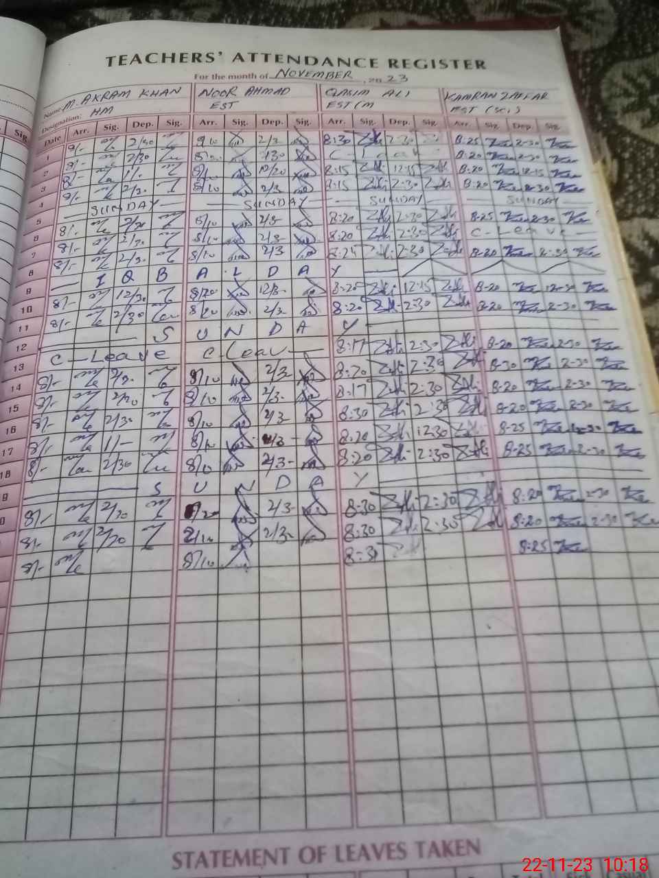 | CNIC | Full Name | Designation | R/C | Absence During Last Calender Month |