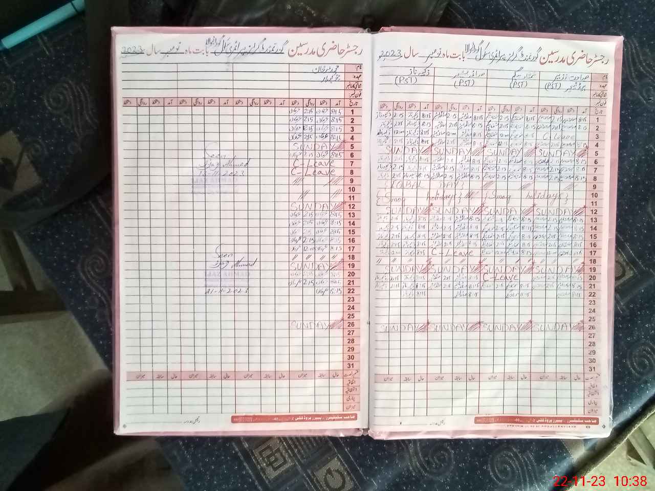 | CNIC | Full Name | Designation | R/C | Absence During Last Calender Month |