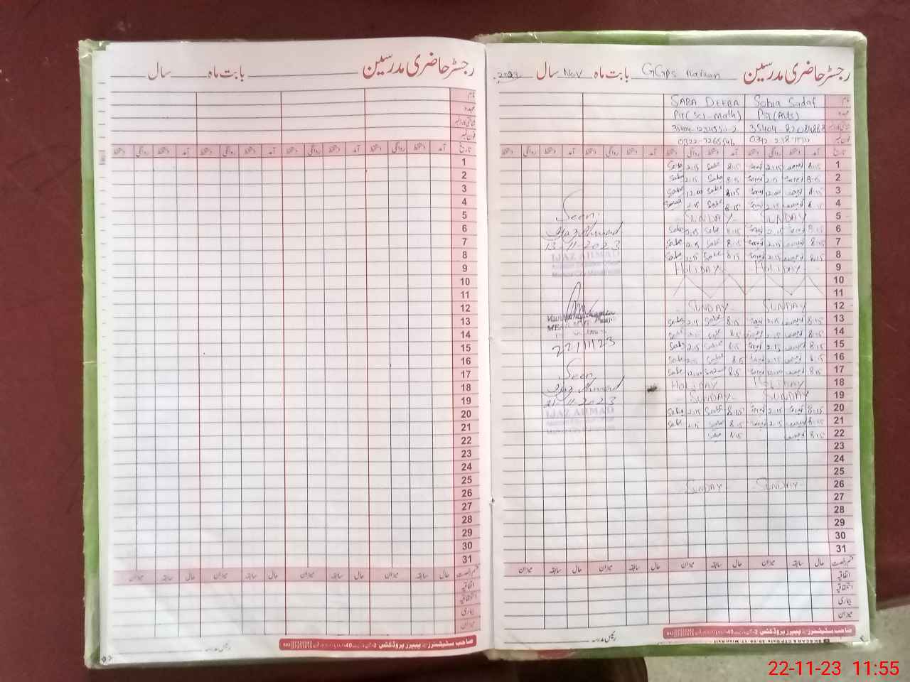 | CNIC | Full Name | Designation | R/C | Absence During Last Calender Month |
