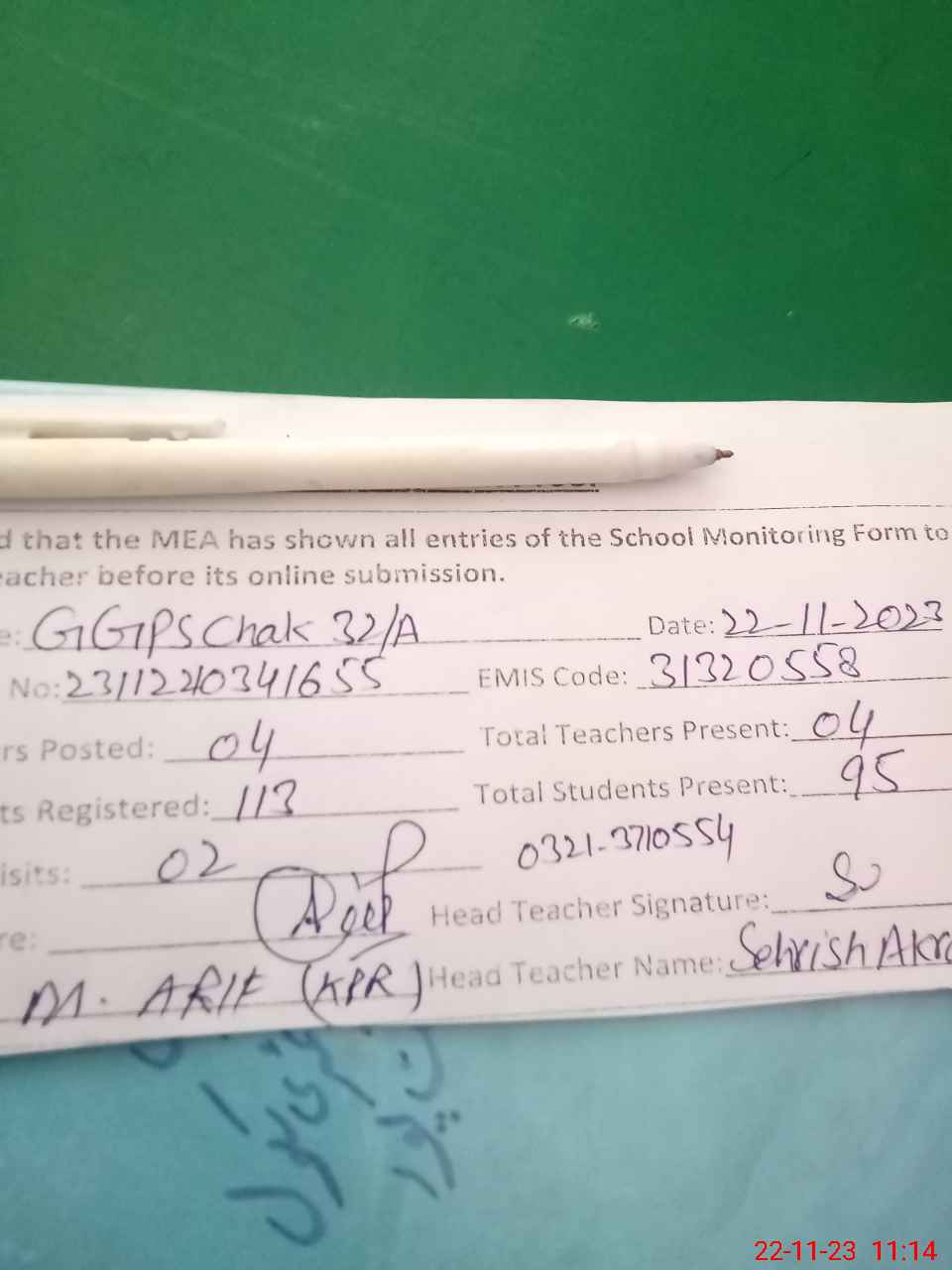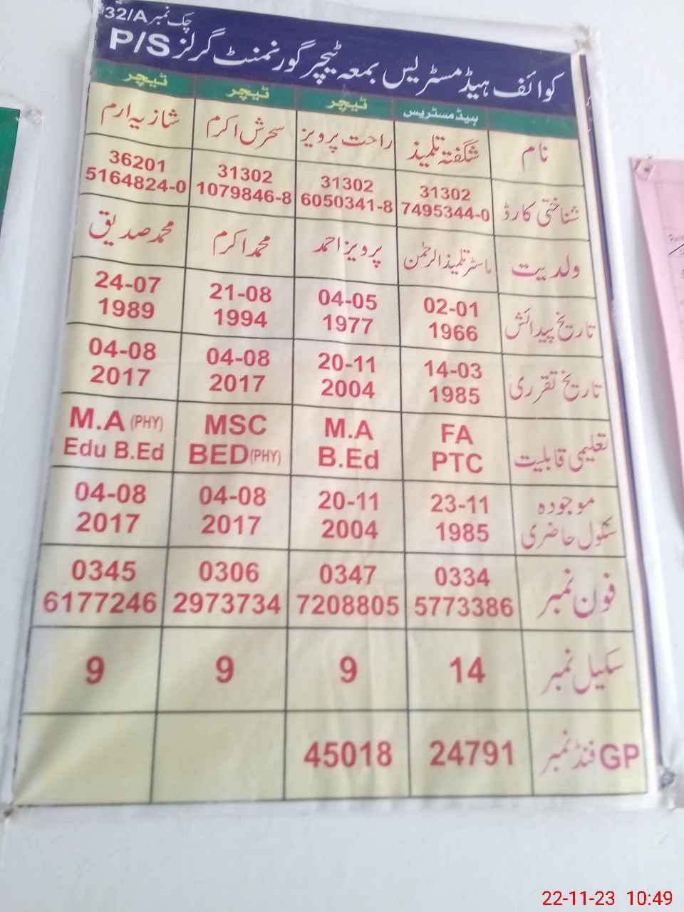 | EMIS Code: 31320558 | Name of School: GGPS CHAK 32/A | |||