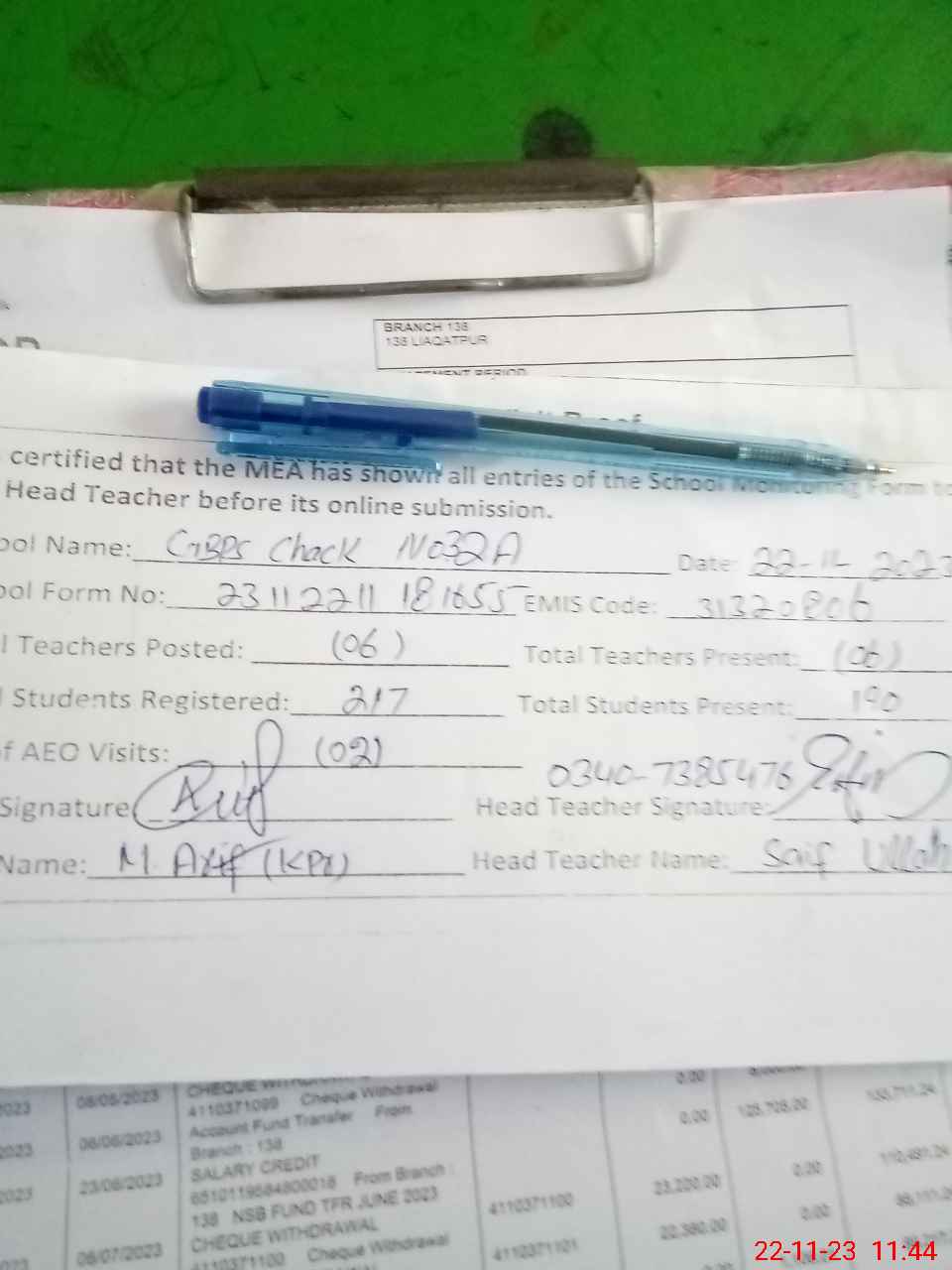 | EMIS Code: 31320806 | Name of School: GPS CHAK 32/A | |||