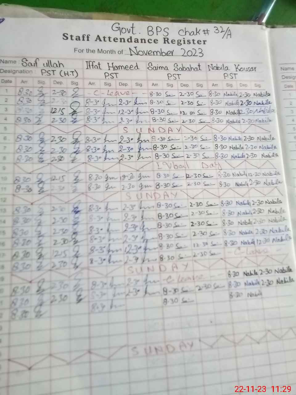 | Name: SA**** UL**** Designation: (School Headmaster's/Headmistress's) PST Phone/Cell Number: 03**** |