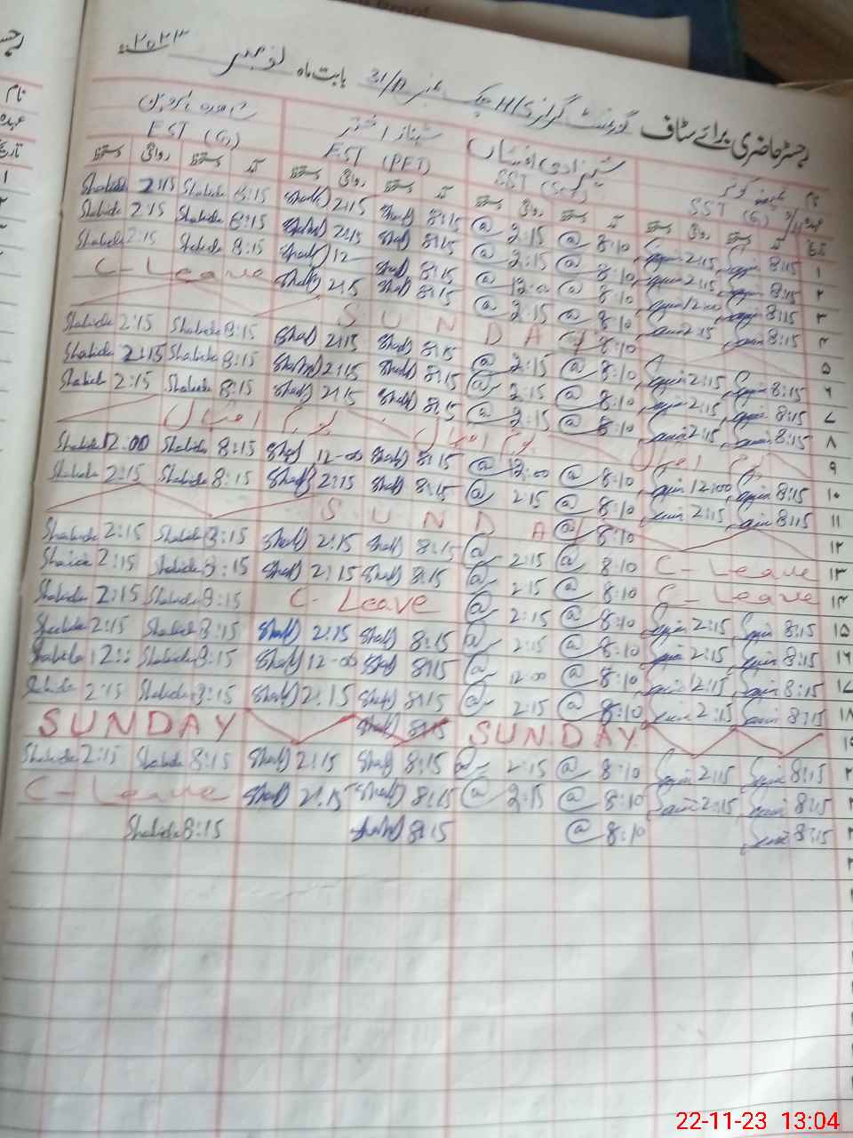 | CNIC | Full Name | Designation | R/C | Absence During Last Calender Month |