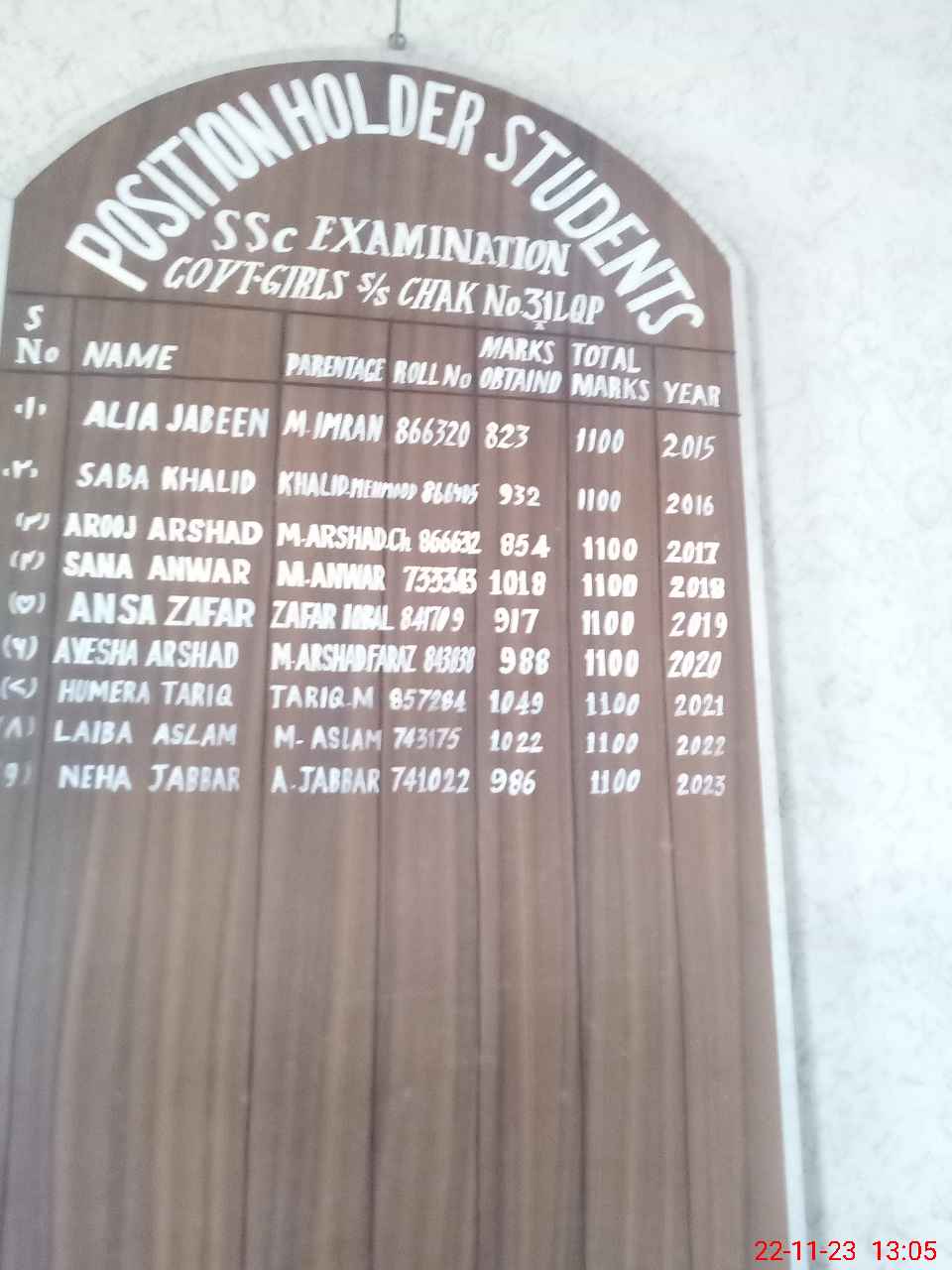 | EMIS Code: 31320073 | Name of School: GGHS CHAK 31/A | |||
