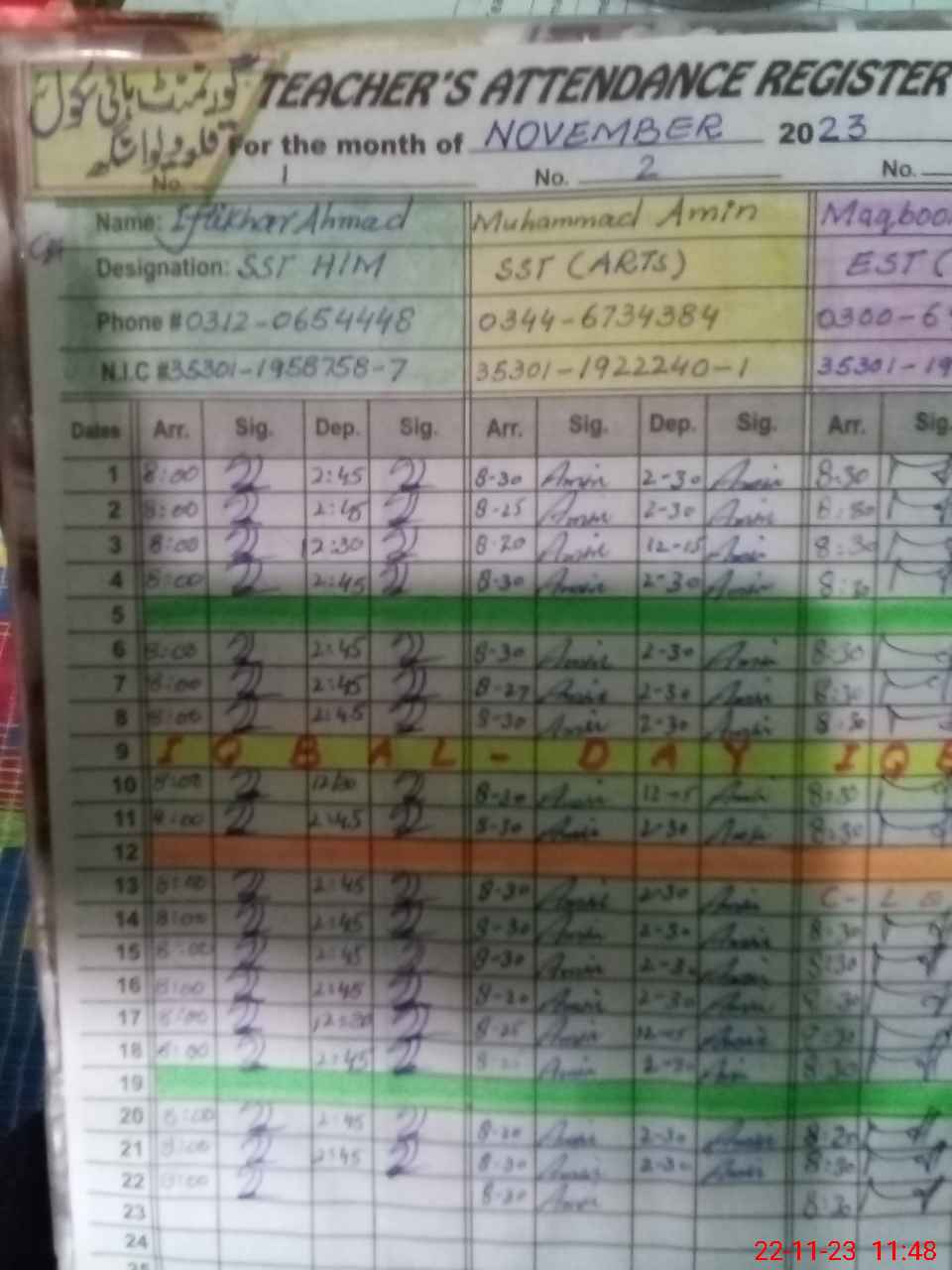 | Name: IF**** AH**** Designation: (School Headmaster's/Headmistress's) SST INCHARGE HM Phone/Cell Number: 03**** |