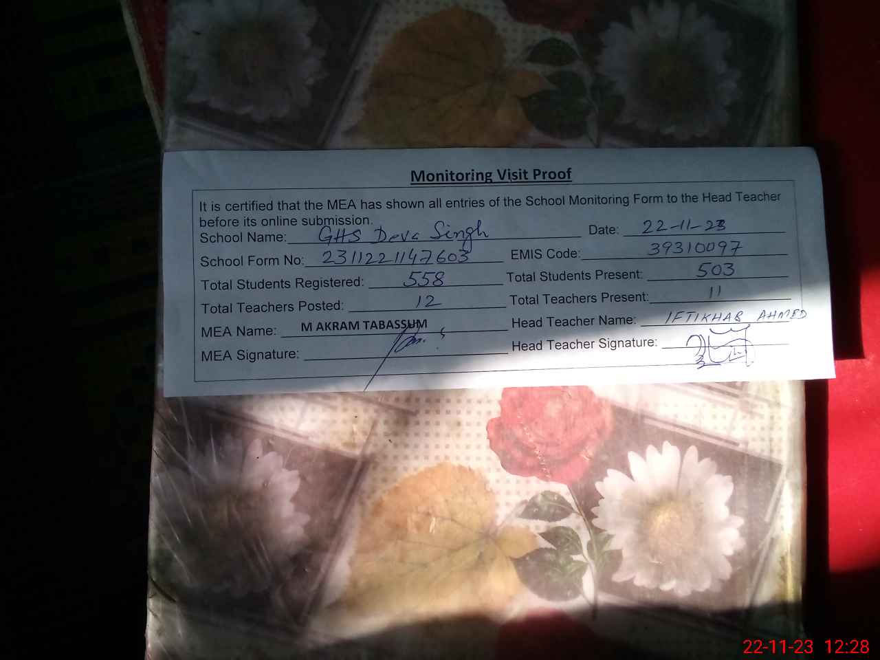 | EMIS Code: 39310097 | Name of School: GHS DEVA SINGH | |||