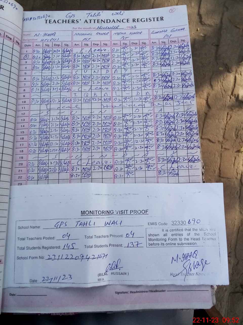 | EMIS Code: 32330690 | Name of School: GPS TAHLI WALI | |||