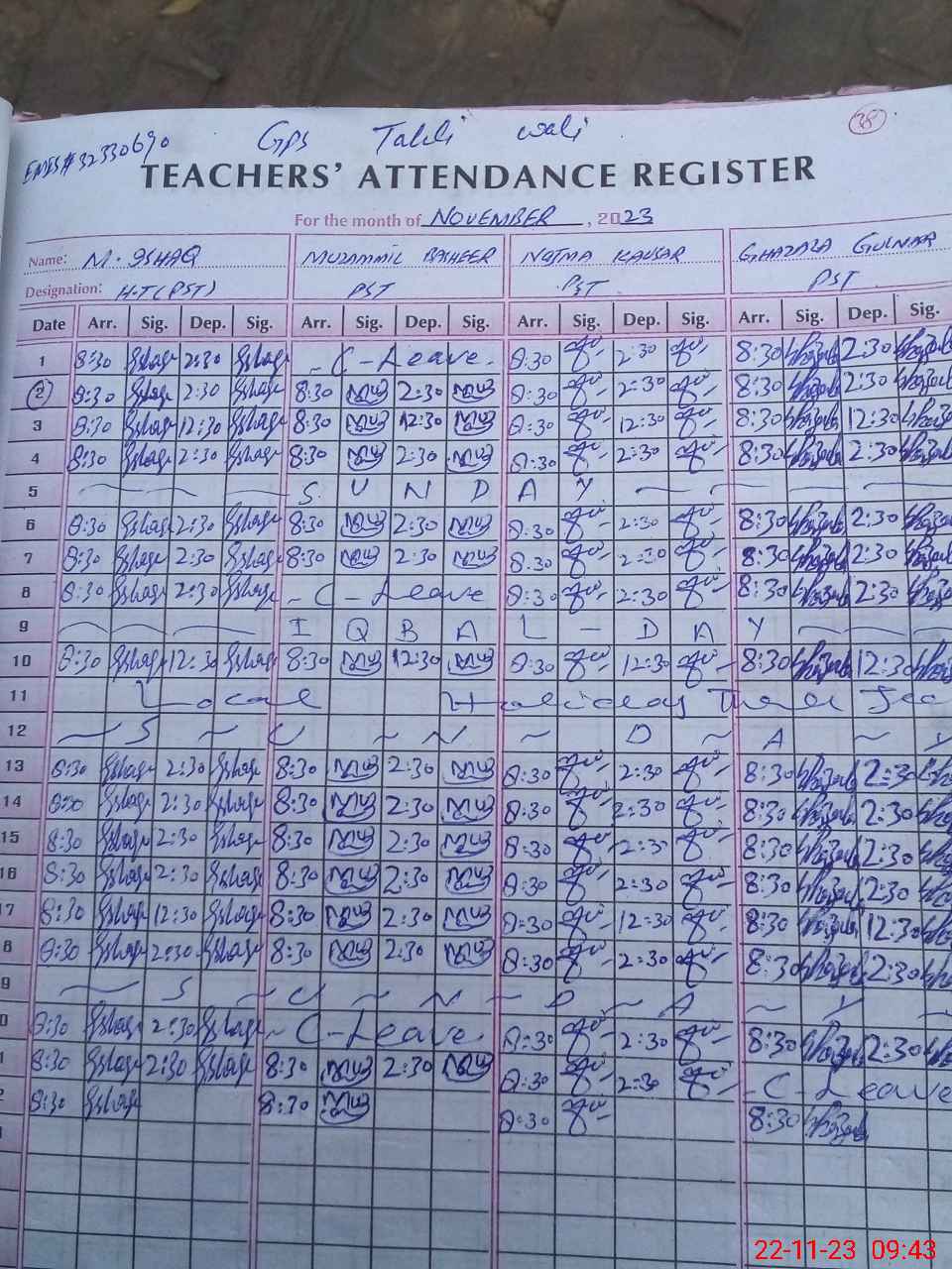 | Name: Mu**** Is**** Designation: (School Headmaster's/Headmistress's) PST/PTC/JV Phone/Cell Number: 03**** |