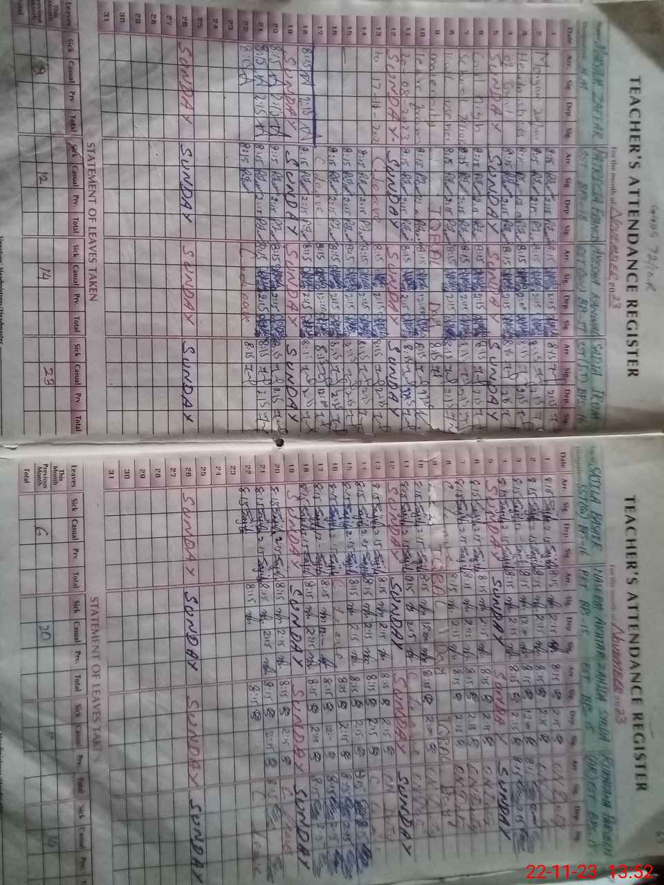 | No. of Students Present - Female | 15 | 0 | 26 | 35 | 20 | 22 | 38 | 22 | 20 | 33 | 24 | 28 | 18 | 301 | ||