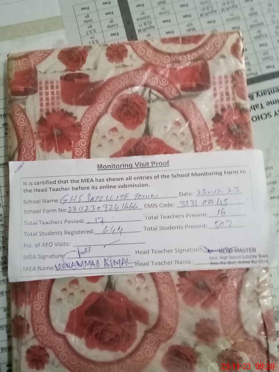 | EMIS Code: 31310045 | Name of School: GHS SATELLITE TOWN KHANPUR | |||