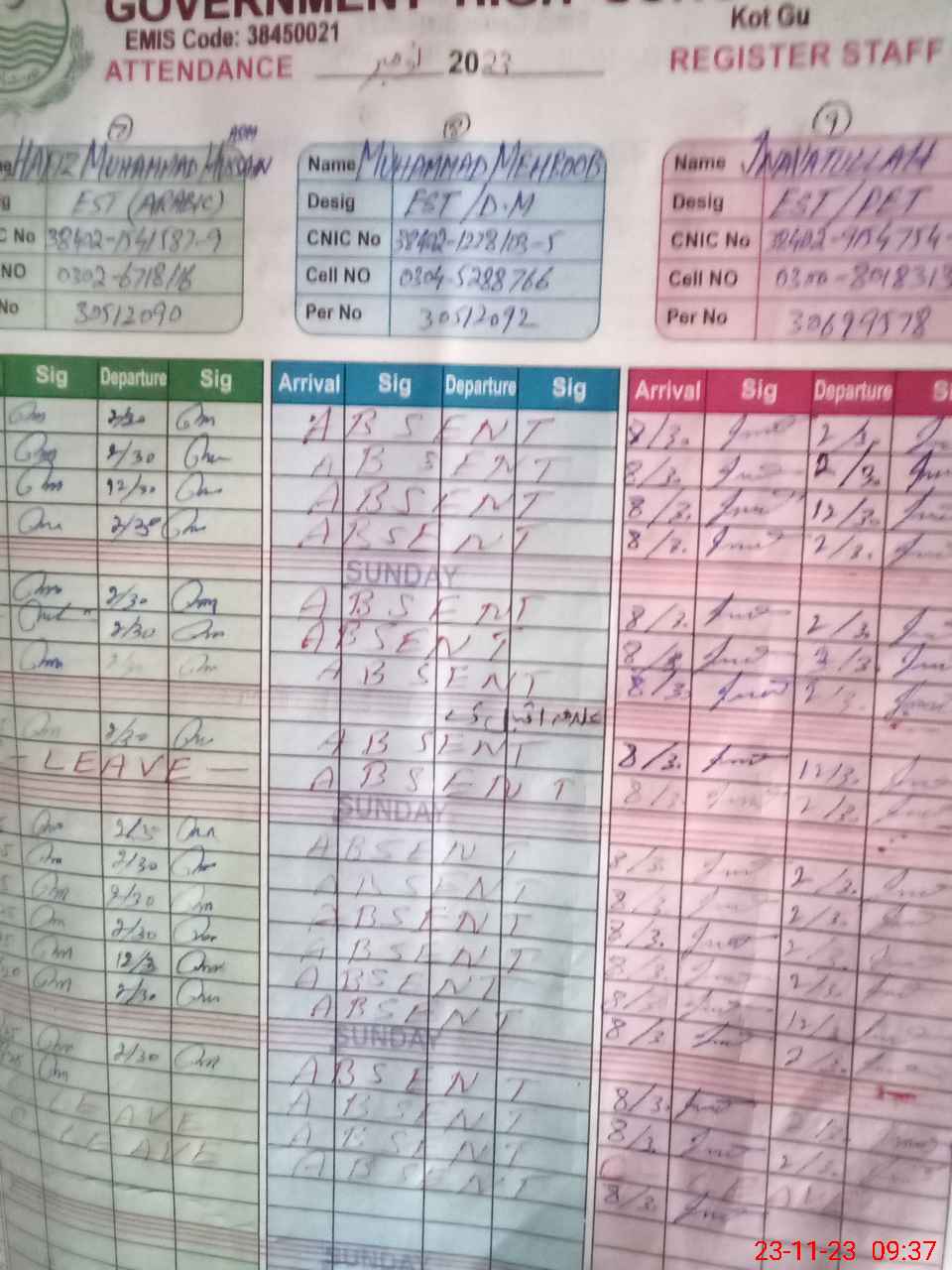 | EMIS Code: 38450021 | Name of School: GHS KOT GUL | |||
