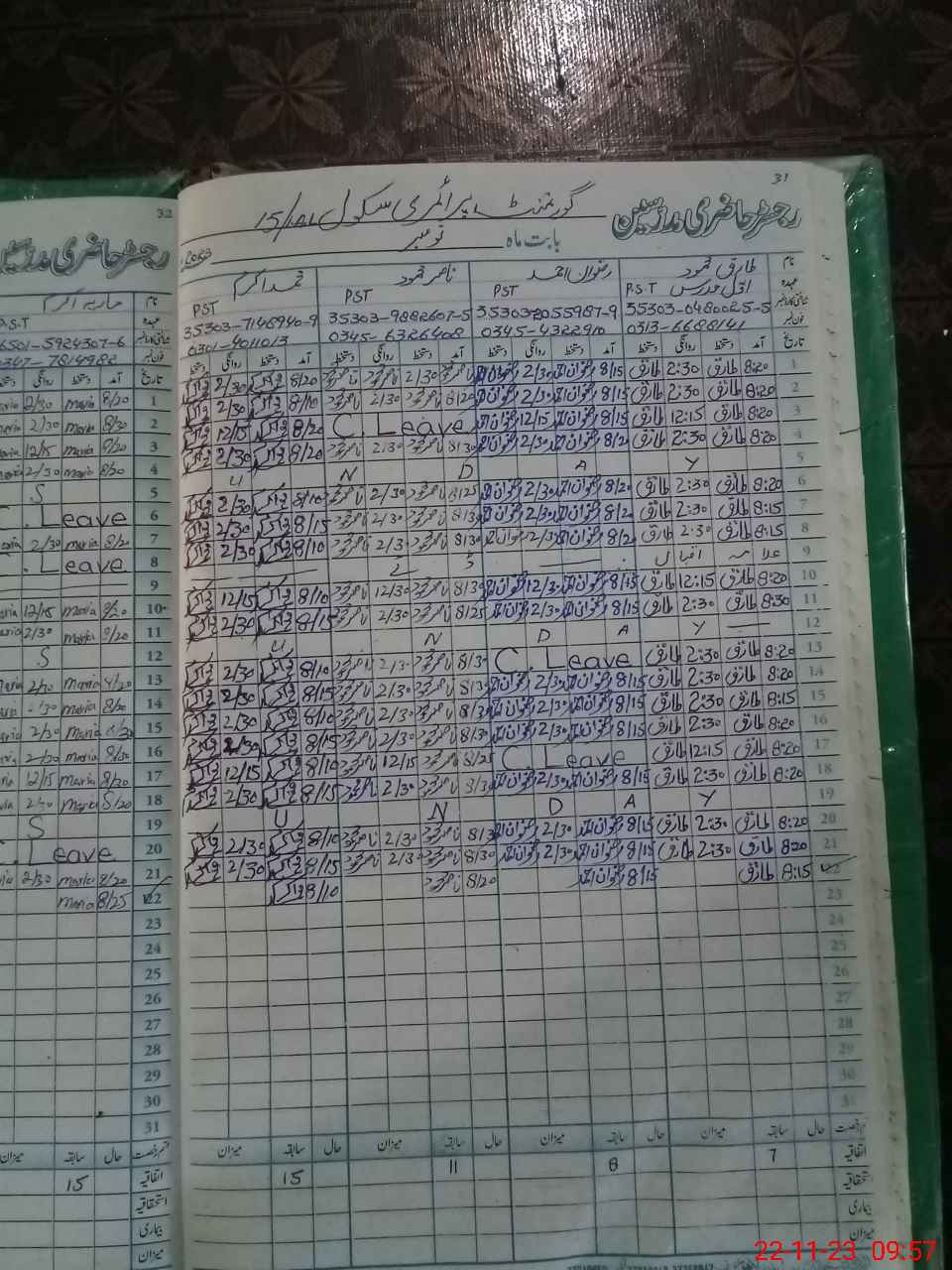 | CNIC | Full Name | Designation | R/C | Absence During Last Calender Month |