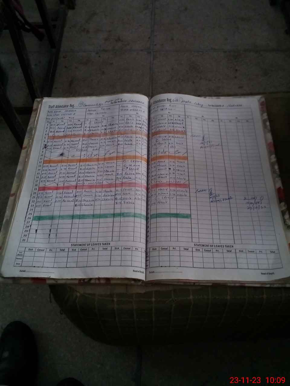 | CNIC | Full Name | Designation | R/C | Absence During Last Calender Month |