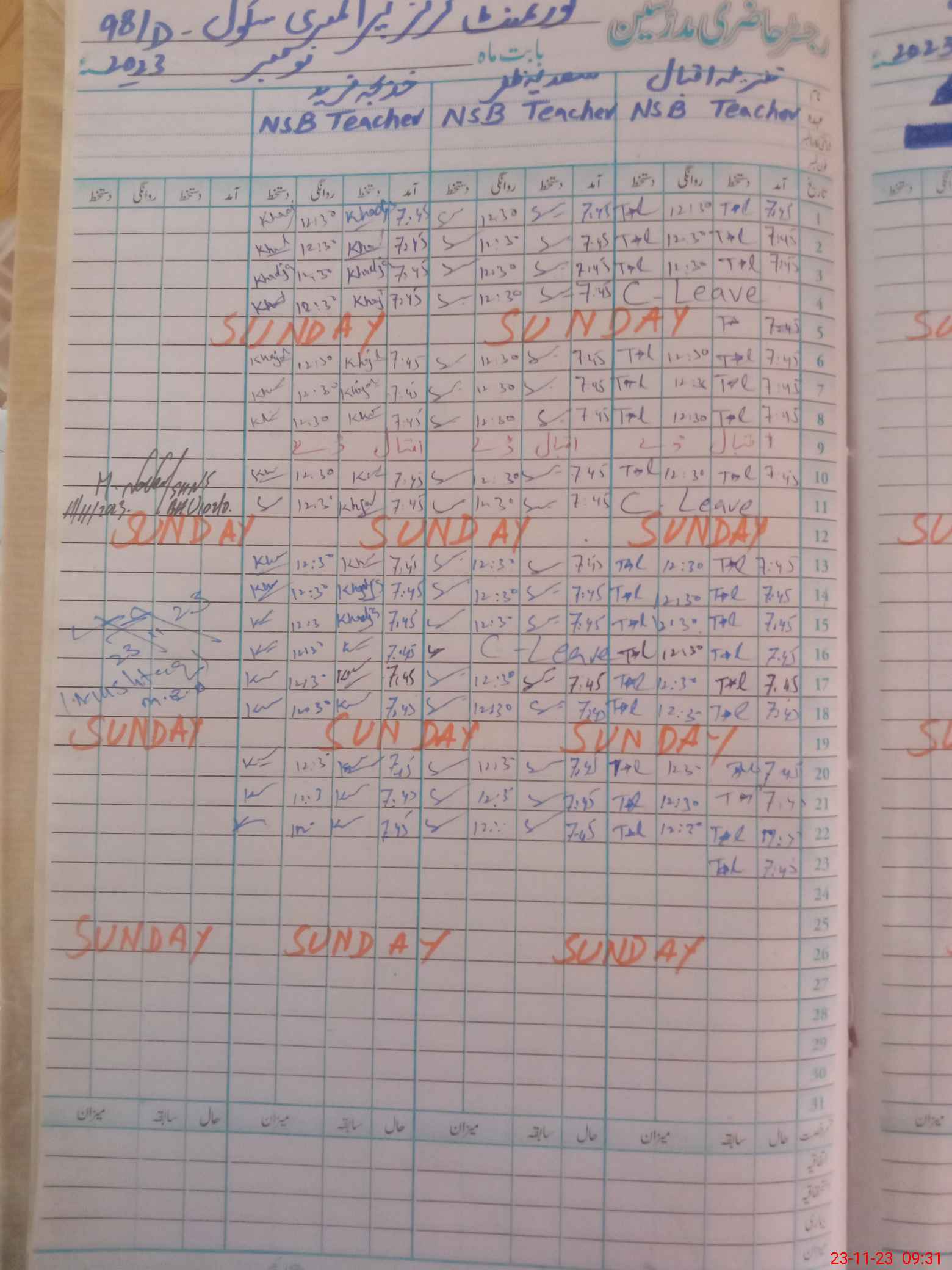| CNIC | Full Name | Designation | R/C | Absence During Last Calender Month |