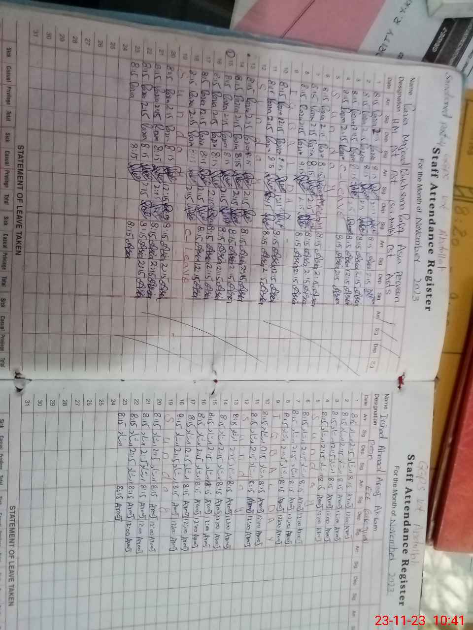 | CNIC | Full Name | Designation | R/C | Absence During Last Calender Month |