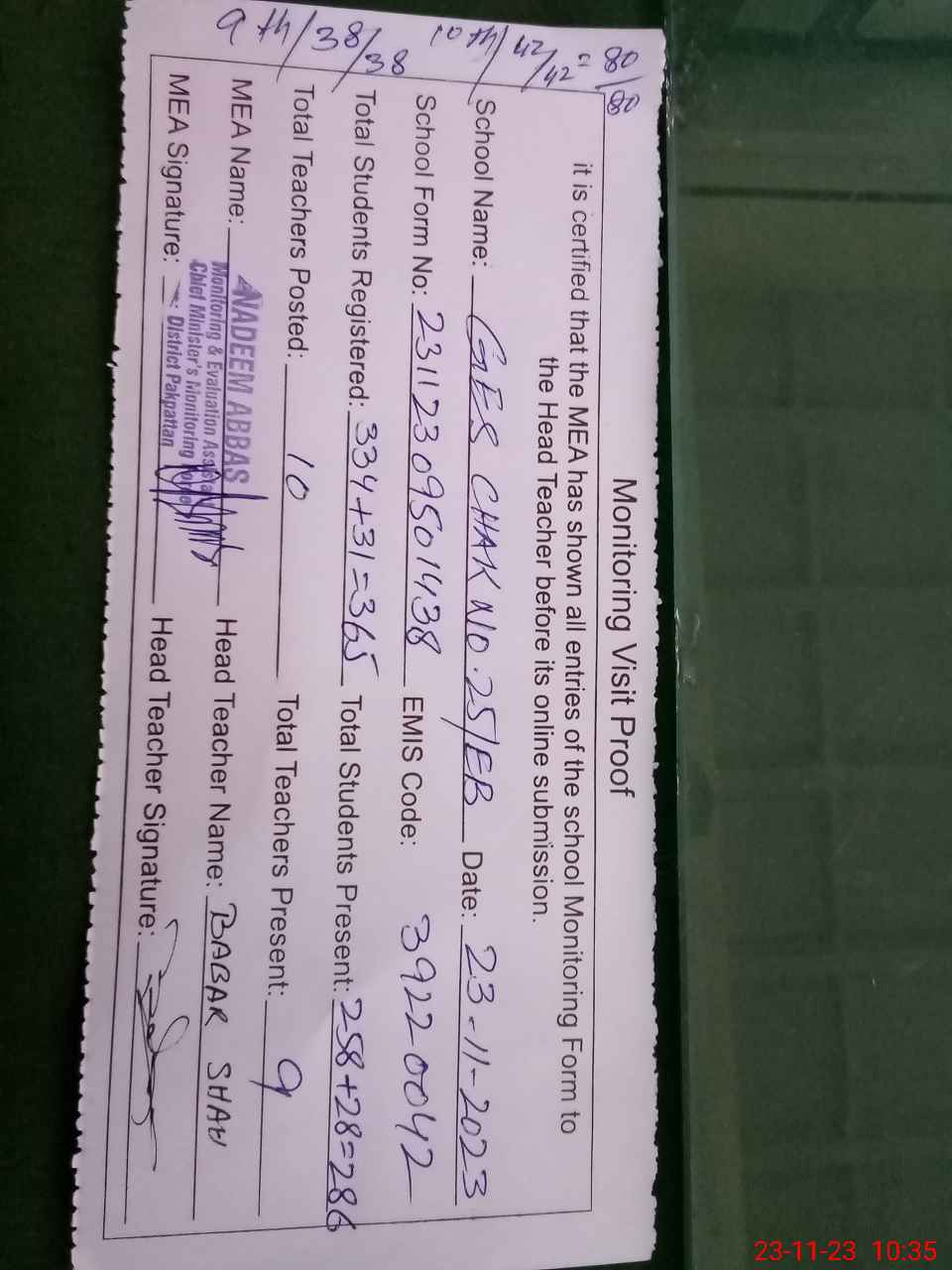 | EMIS Code: 39220042 | Name of School: GES CHAK NO. 25 / EB | |||