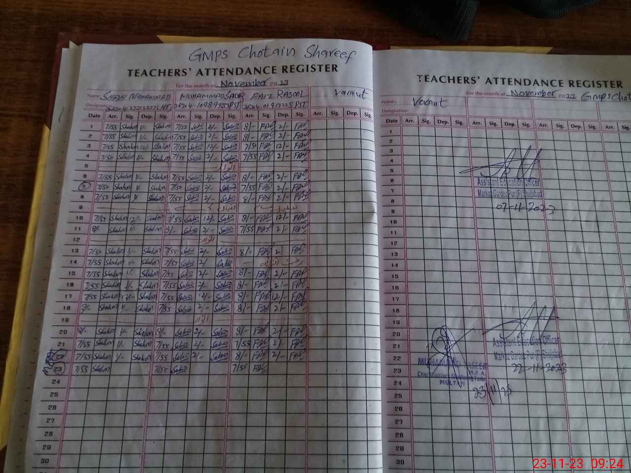 | Name: Sh**** Mu**** Designation: (School Headmaster's/Headmistress's) PST/PTC/JV Phone/Cell Number: 03**** |