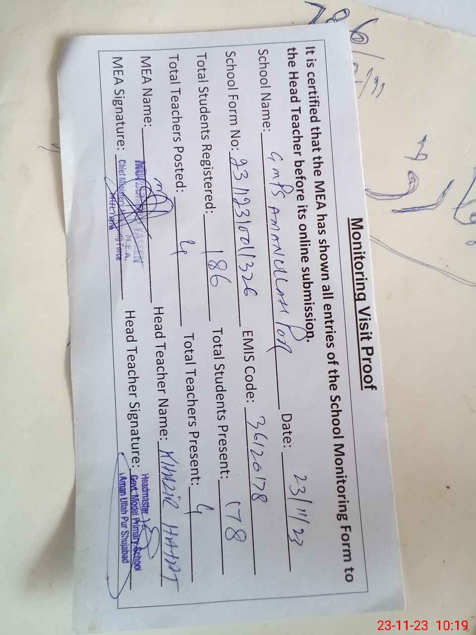 | EMIS Code: 36120178 | Name of School: GMPS AMAN ULLAH PUR SHUJABAD | |||