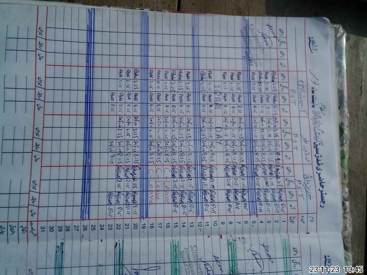 | CNIC | Full Name | Designation | R/C | Absence During Last Calender Month |