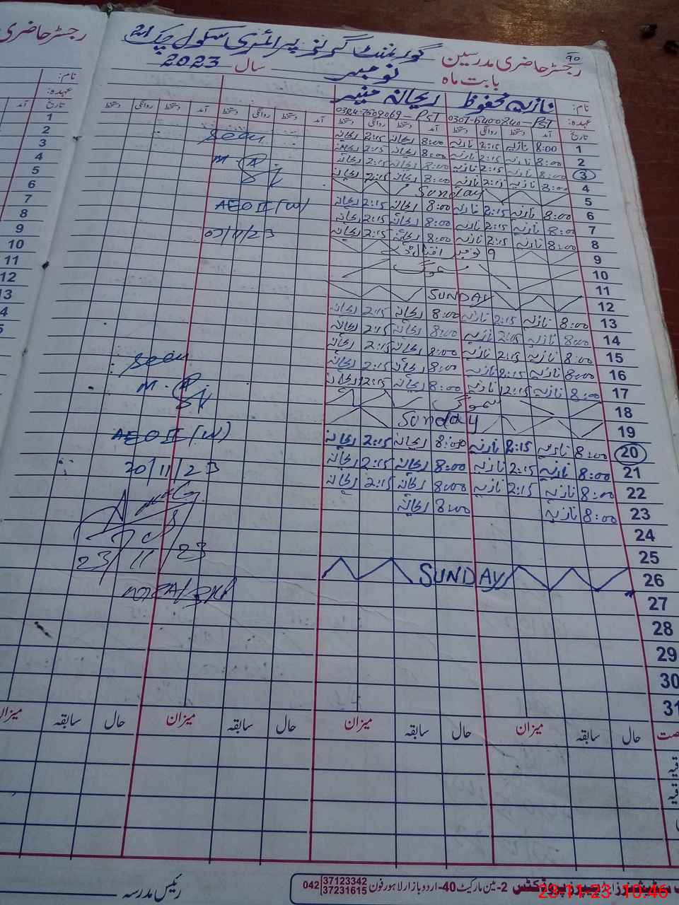 | Name of AEO: | AEO Contact No.: | MEA Phone#: 03**** | ||