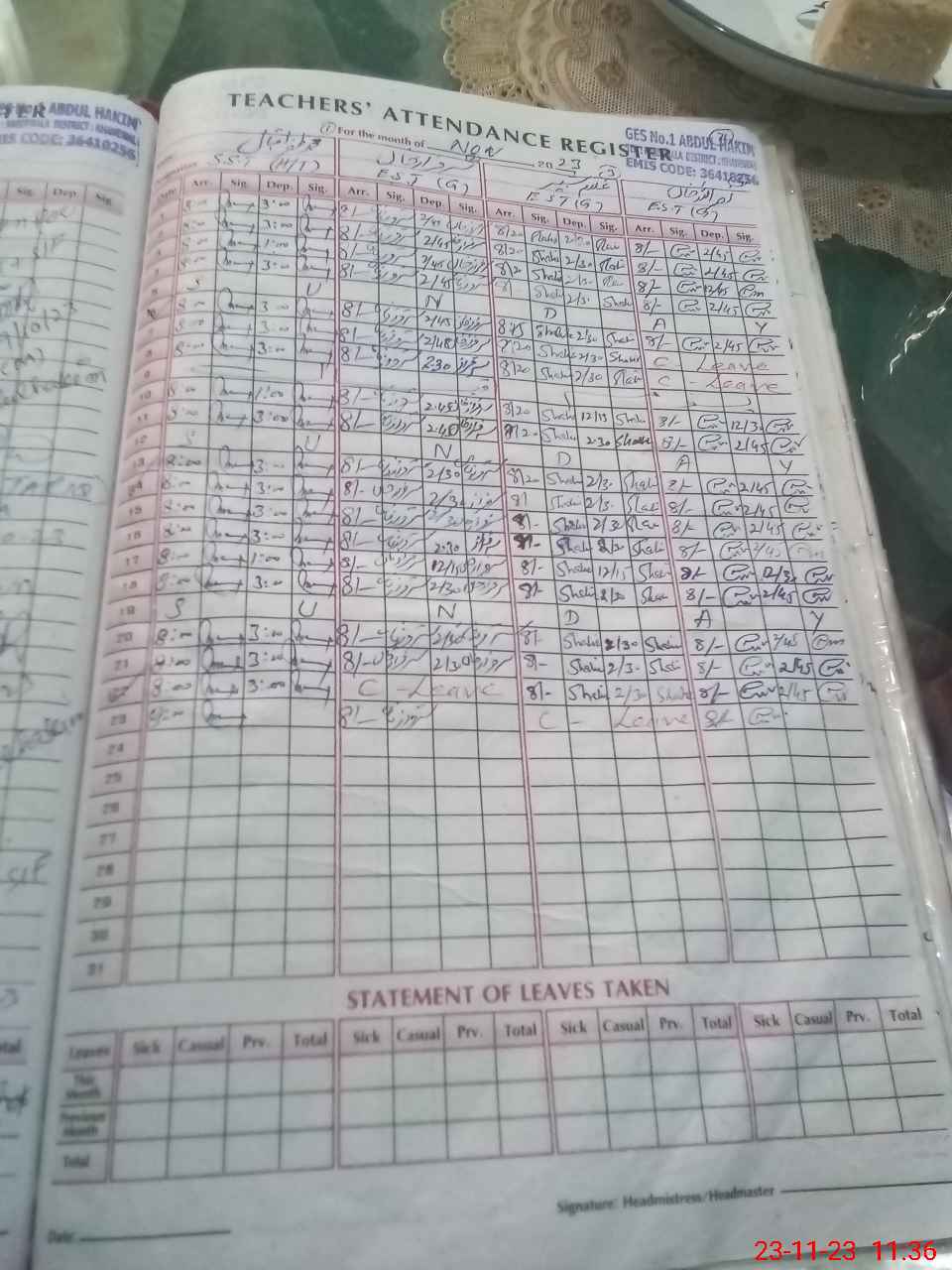 | Monitoring Date: 23-11-2023 | Start Time: 23-11-2023 10:49 AM | End Time: 23-11-2023 11:41 AM | Name of MEA: Mu**** Mu**** | |