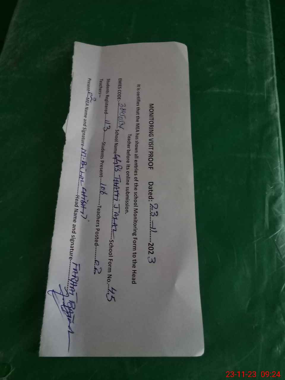 | Monitoring Date: 23-11-2023 | Start Time: 23-11-2023 09:05 AM | End Time: 23-11-2023 09:26 AM | Name of MEA: MU**** BI**** CH**** | |