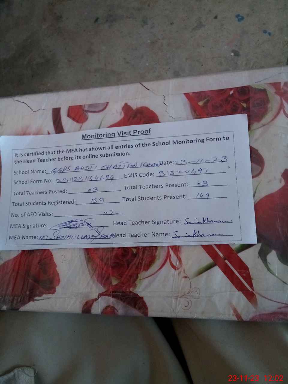 | EMIS Code: 31320497 | Name of School: GGPS BASTI CHATHAY KHAN | |||
