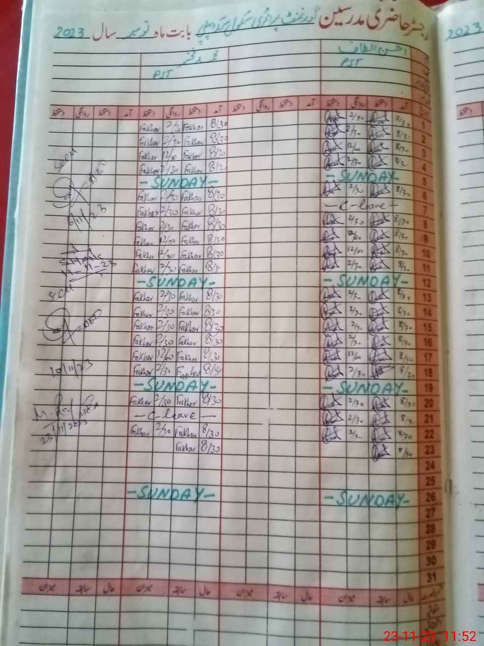 | CNIC | Full Name | Designation | R/C | Absence During Last Calender Month |