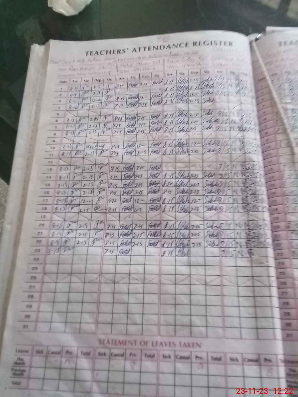 | No. of Students Present - Female | 12 | 0 | 30 | 23 | 28 | 17 | 31 | 40 | 28 | 28 | 26 | 263 | ||||