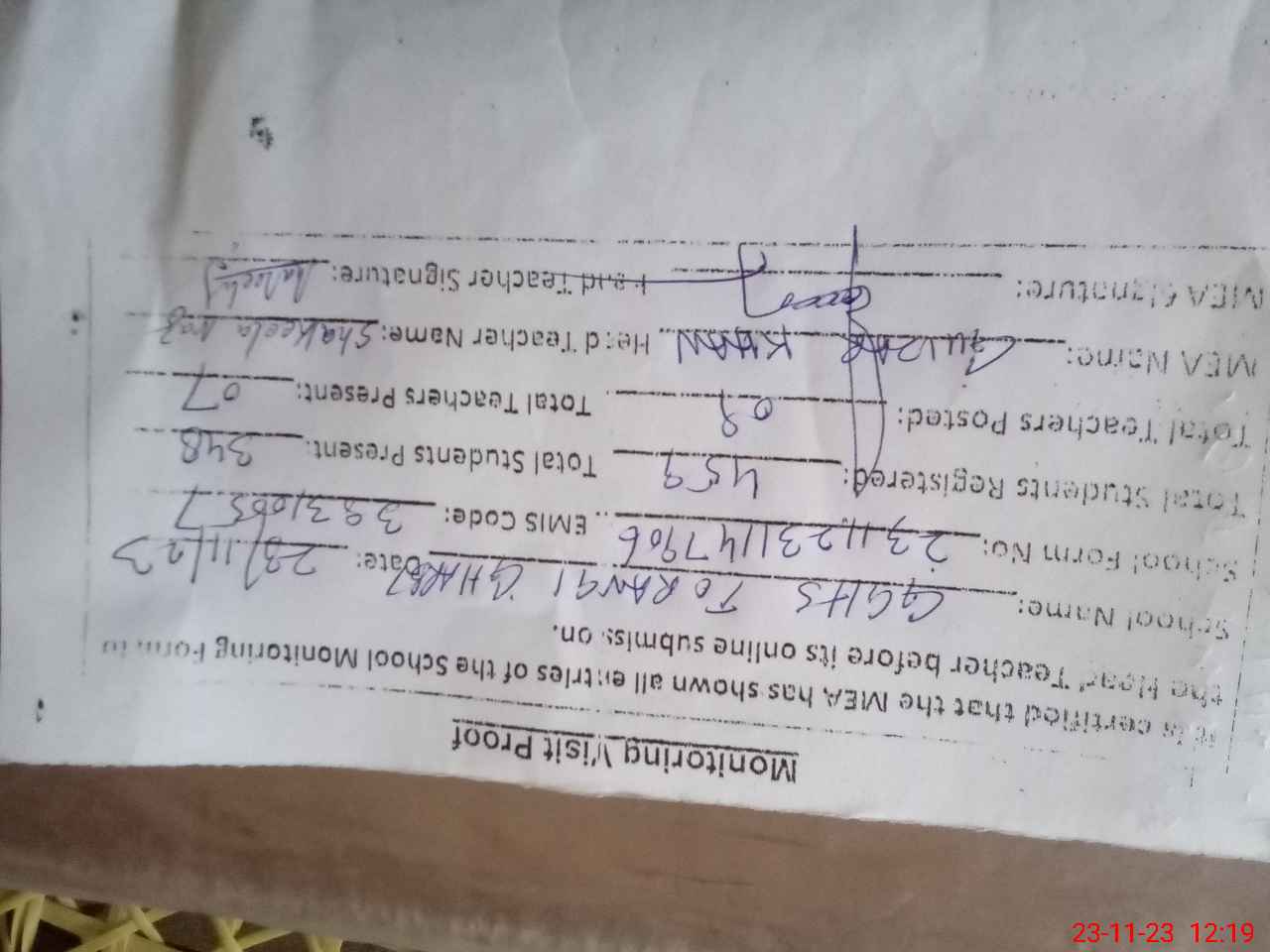 | EMIS Code: 38310057 | Name of School: GGHS TORANGI GHARBI | |||
