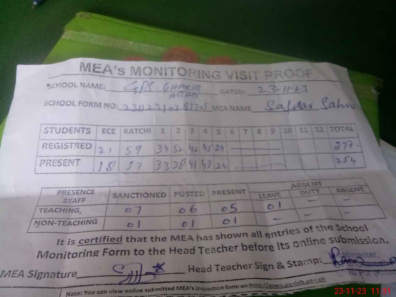 | EMIS Code: 36410524 | Name of School: GPS GHARIB ABAD MULA PUR KABIRWALA | |||