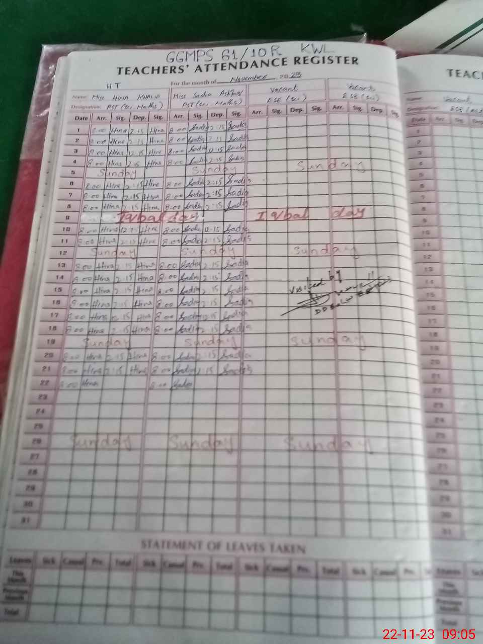 | Name: Hi**** Kh**** Designation: (School Headmaster's/Headmistress's) PST Phone/Cell Number: 03**** |
