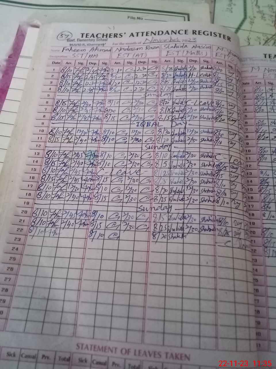 | CNIC | Full Name | Designation | R/C | Absence During Last Calender Month |