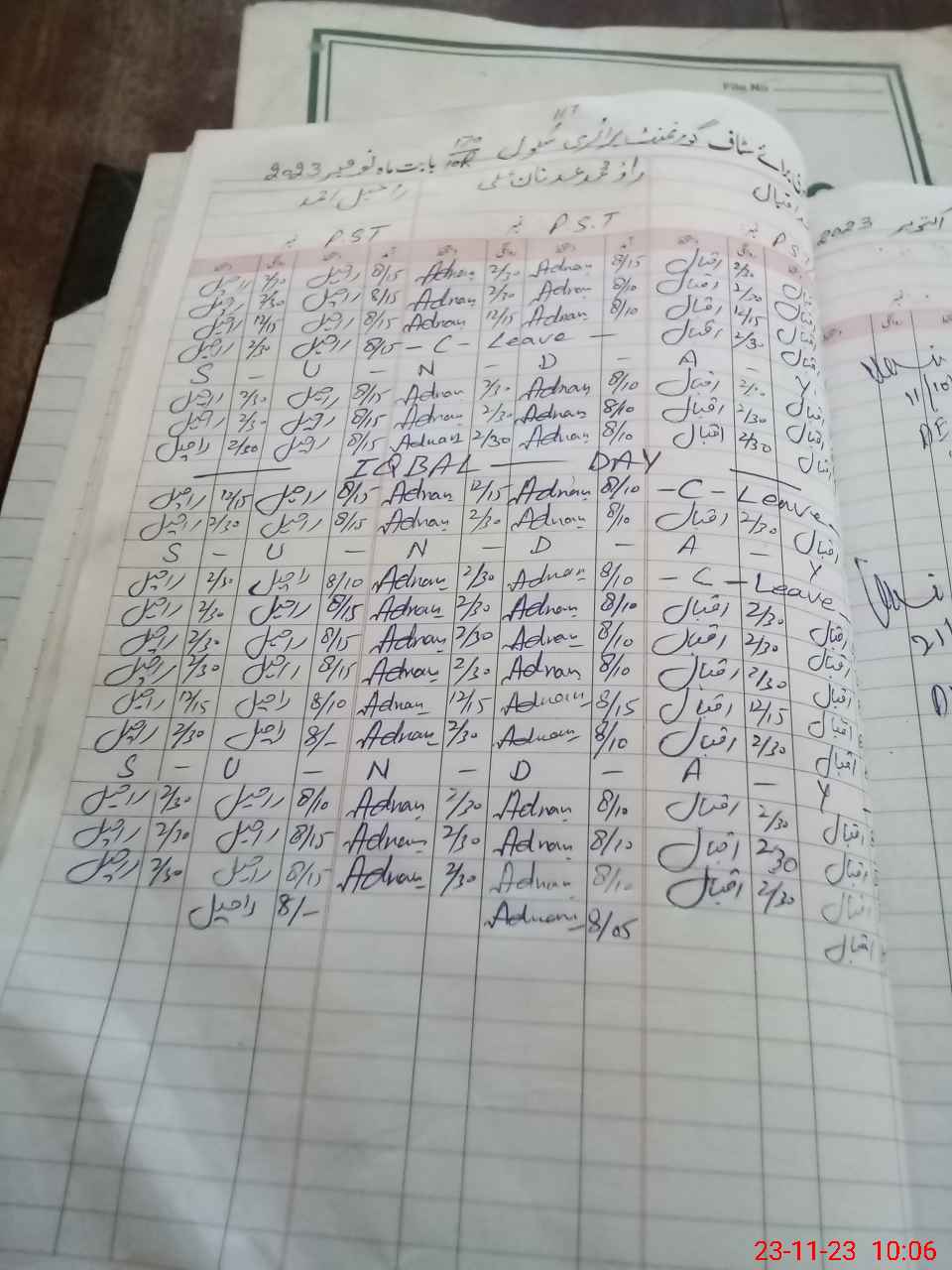 | Leave | Duty | Absent | Maternity | Medical | Ex- Pak |