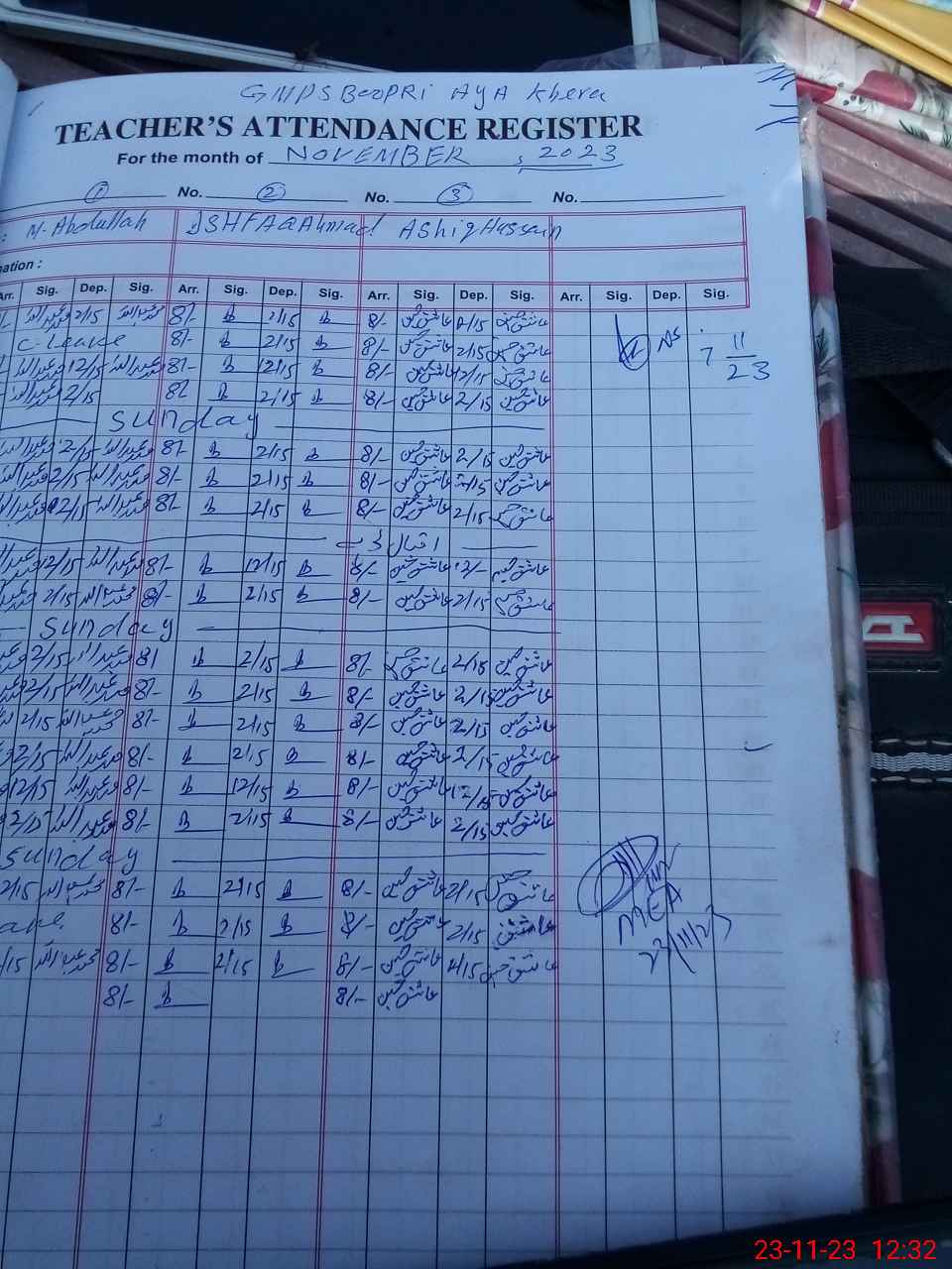 | Monitoring Date: 23-11-2023 | Start Time: 23-11-2023 11:40 AM | End Time: 23-11-2023 12:35 PM | Name of MEA: Kh**** Me**** | |