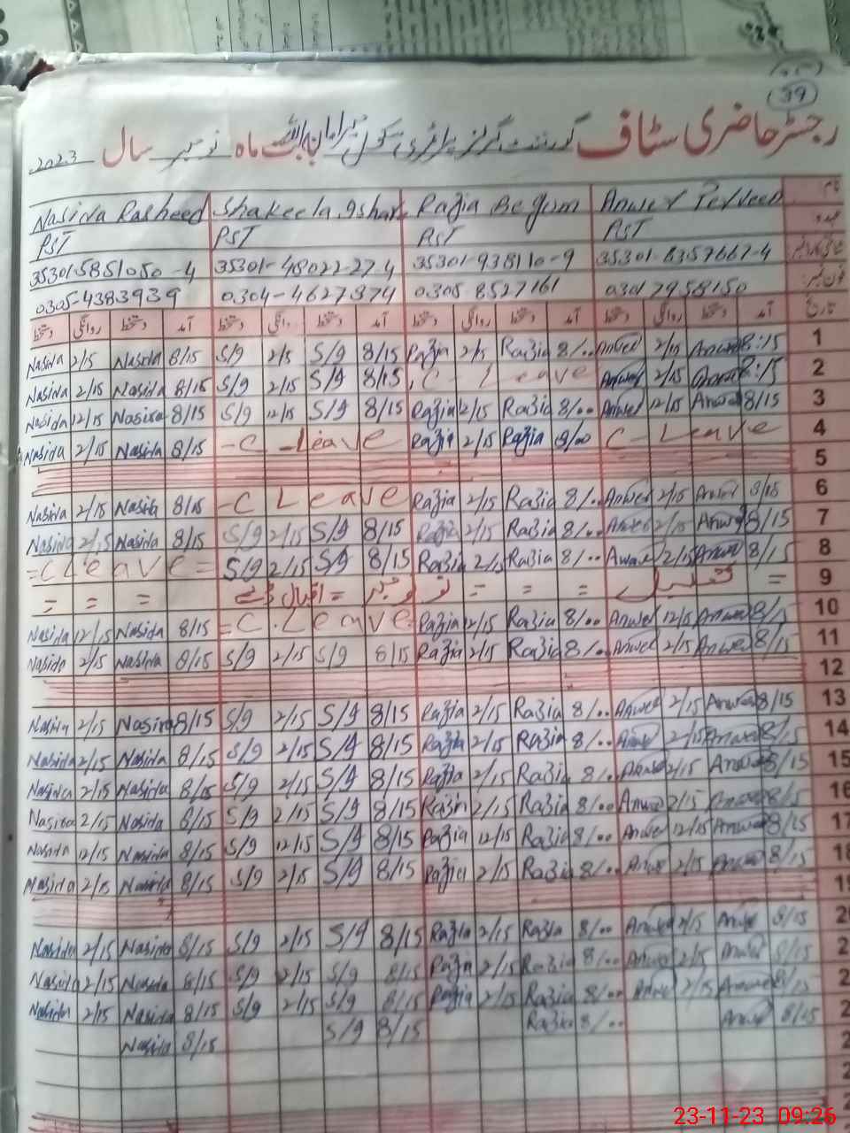 | CNIC | Full Name | Designation | R/C | Absence During Last Calender Month |