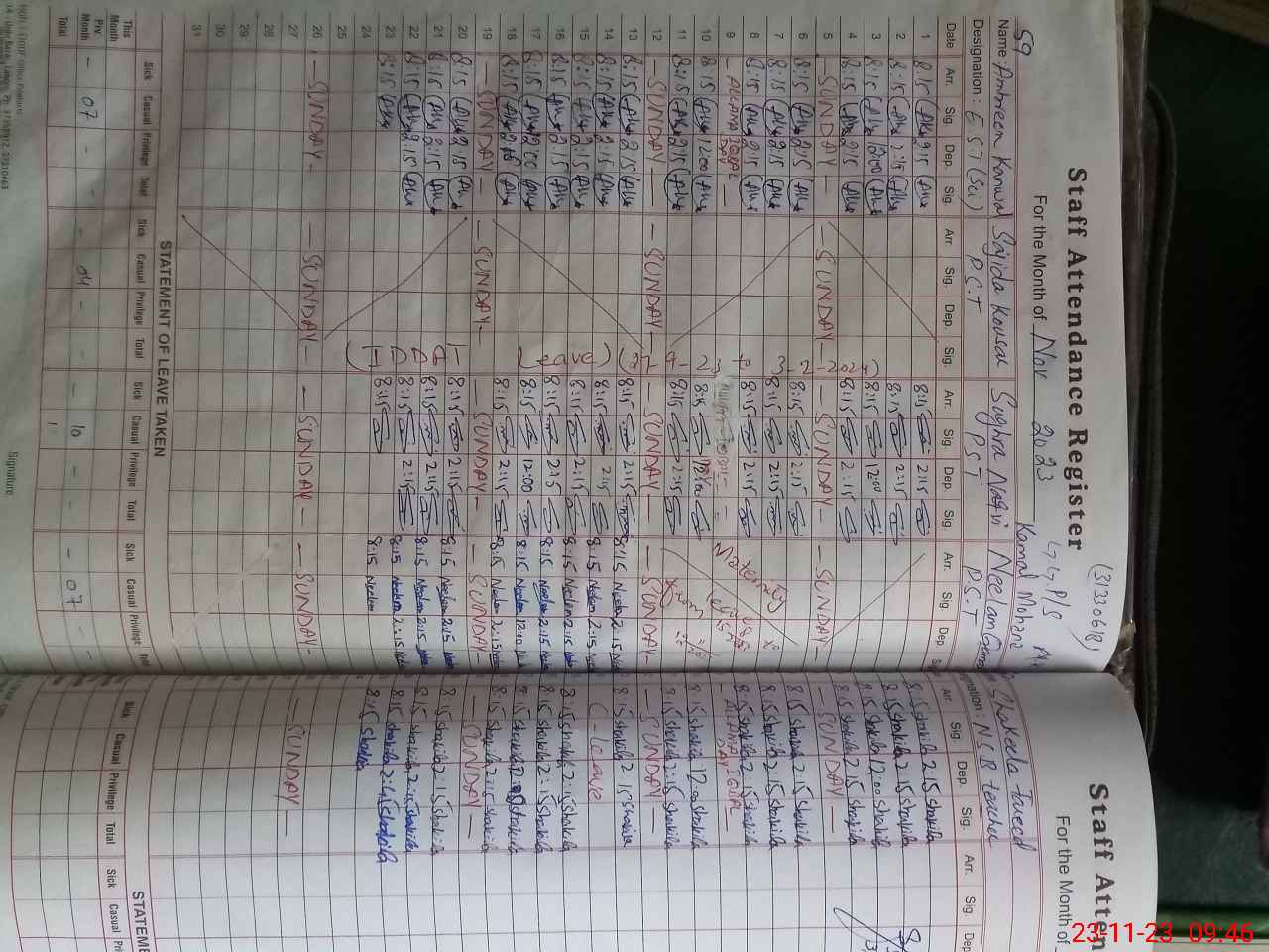 | Monitoring Date: 23-11-2023 | Start Time: 23-11-2023 09:27 AM | End Time: 23-11-2023 10:06 AM | Name of MEA: Sh**** Ah**** | |