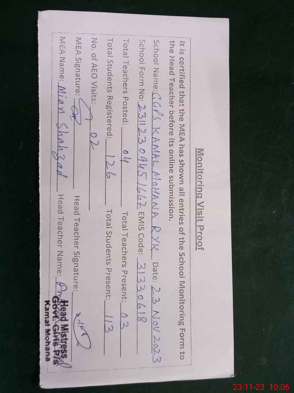 | EMIS Code: 31330618 | Name of School: GGPS KAMAL MOHANA RYK | |||