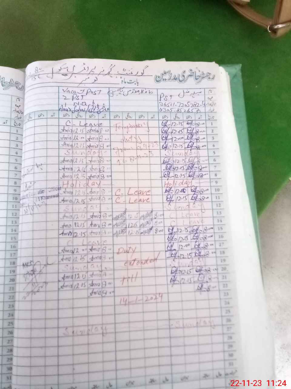 | Name: NA**** MU**** Designation: (School Headmaster's/Headmistress's) PST Phone/Cell Number: 03**** |