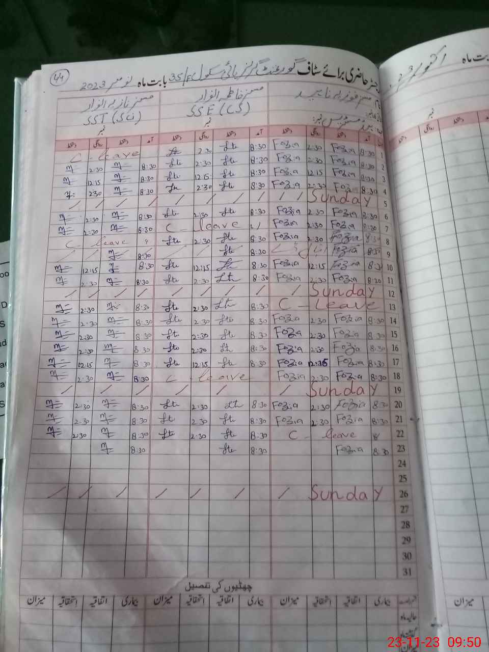 | Leave | Duty | Absent | Maternity | Medical | Ex- Pak |