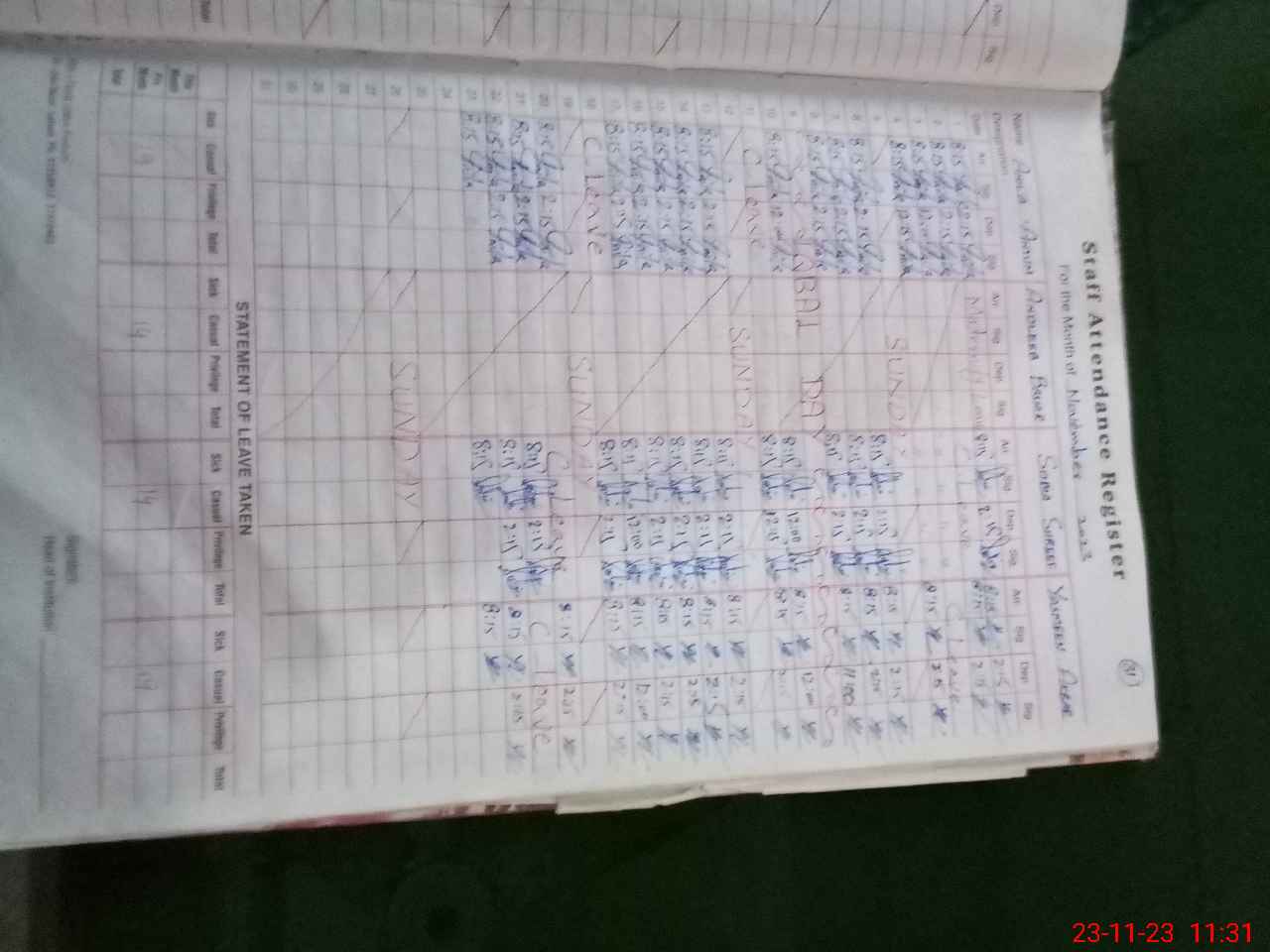 | Leave | Duty | Absent | Maternity | Medical | Ex- Pak |