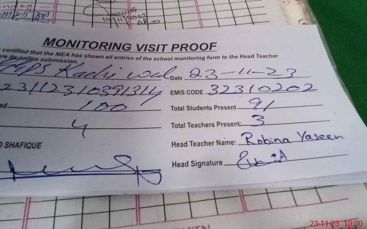 | EMIS Code: 32310202 | Name of School: GGPS KACHI WALI | |||