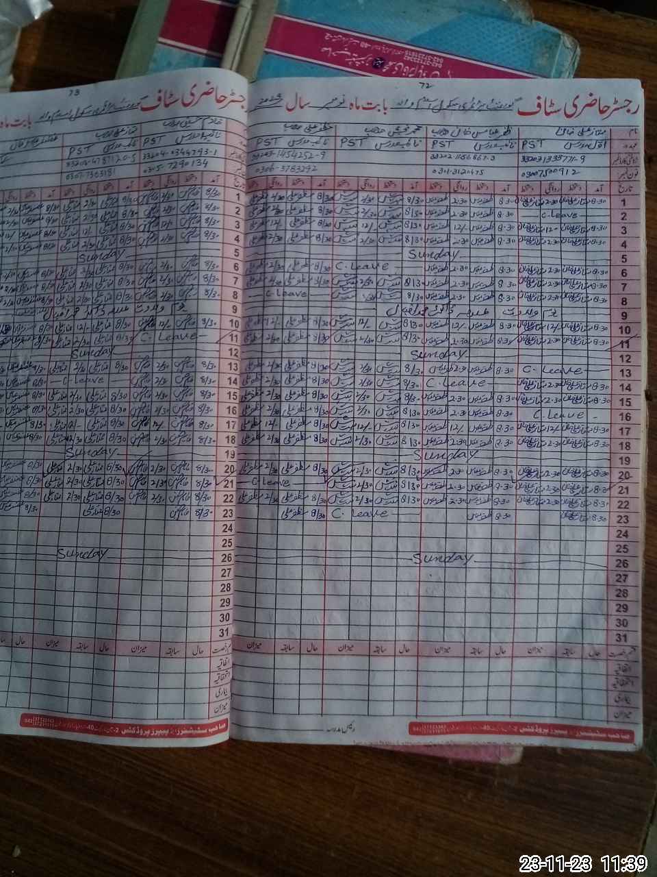 | Name: MU**** AL**** Designation: (School Headmaster's/Headmistress's) PST Phone/Cell Number: 03**** |