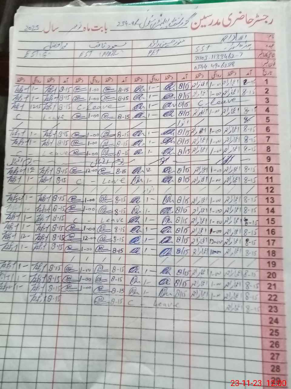| Name: EJ**** AH**** Designation: (School Headmaster's/Headmistress's) S.S.T.(G) Phone/Cell Number: 03**** |