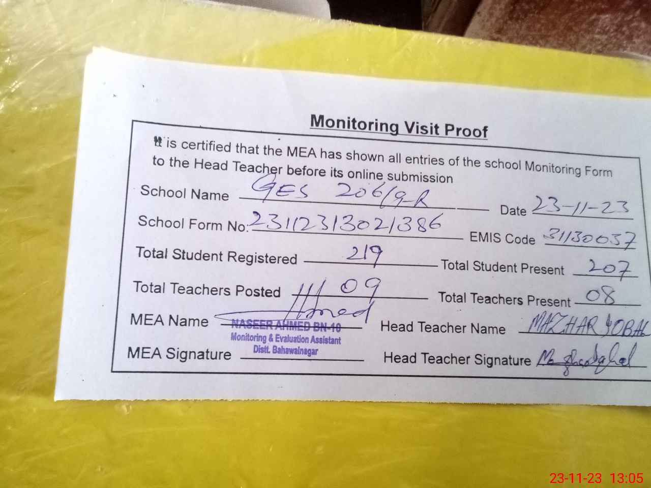 | EMIS Code: 31130037 | Name of School: GES CHAK NO. 206/9-R | |||
